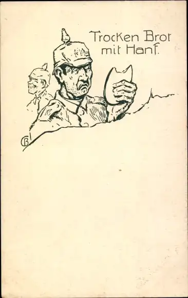 Ak Trocken Brot mit Hanf, Enttäuschter Soldat mit wenig Essen