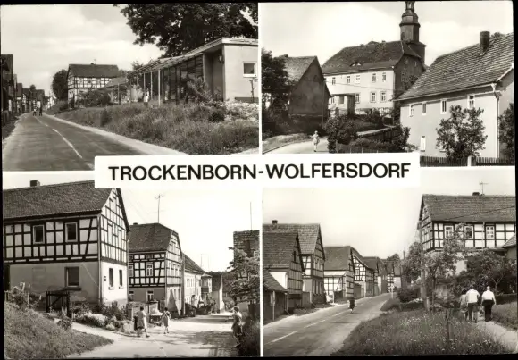 Ak Trockenborn Wolfersdorf in Thüringen, Straßenpartien, Kirche, Fachwerkhäuser