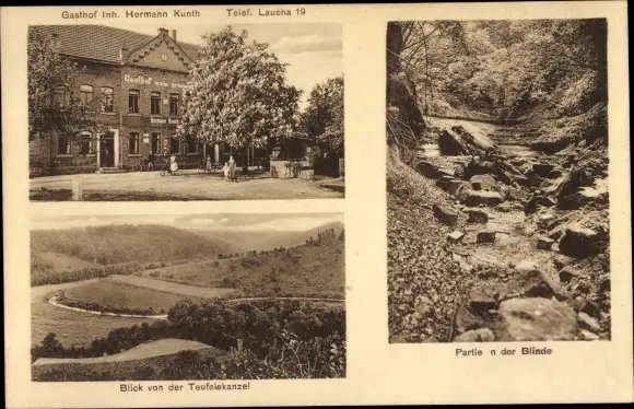 Ak Tröbsdorf Laucha an der Unstrut, Gasthof Hermann Kunth, Blick von der Teufelskanzel, Blinde