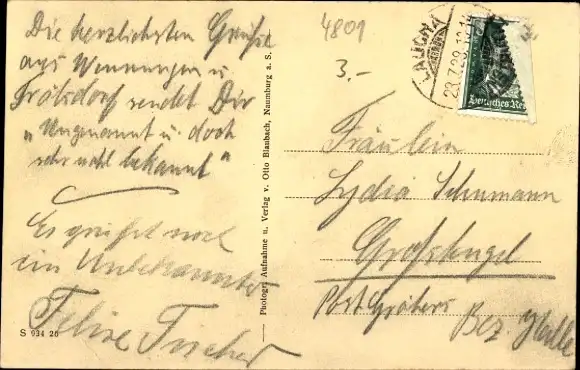 Zustand siehe Scan, gelaufen, 1923 - ca 14 cm X 9 cm