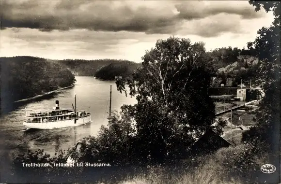 Ak Trollhättan Schweden, Inloppet till Slussarna