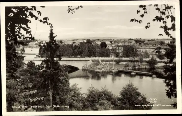 Ak Trollhättan Schweden, Utsikt over Trollhättan fran Strömsberg