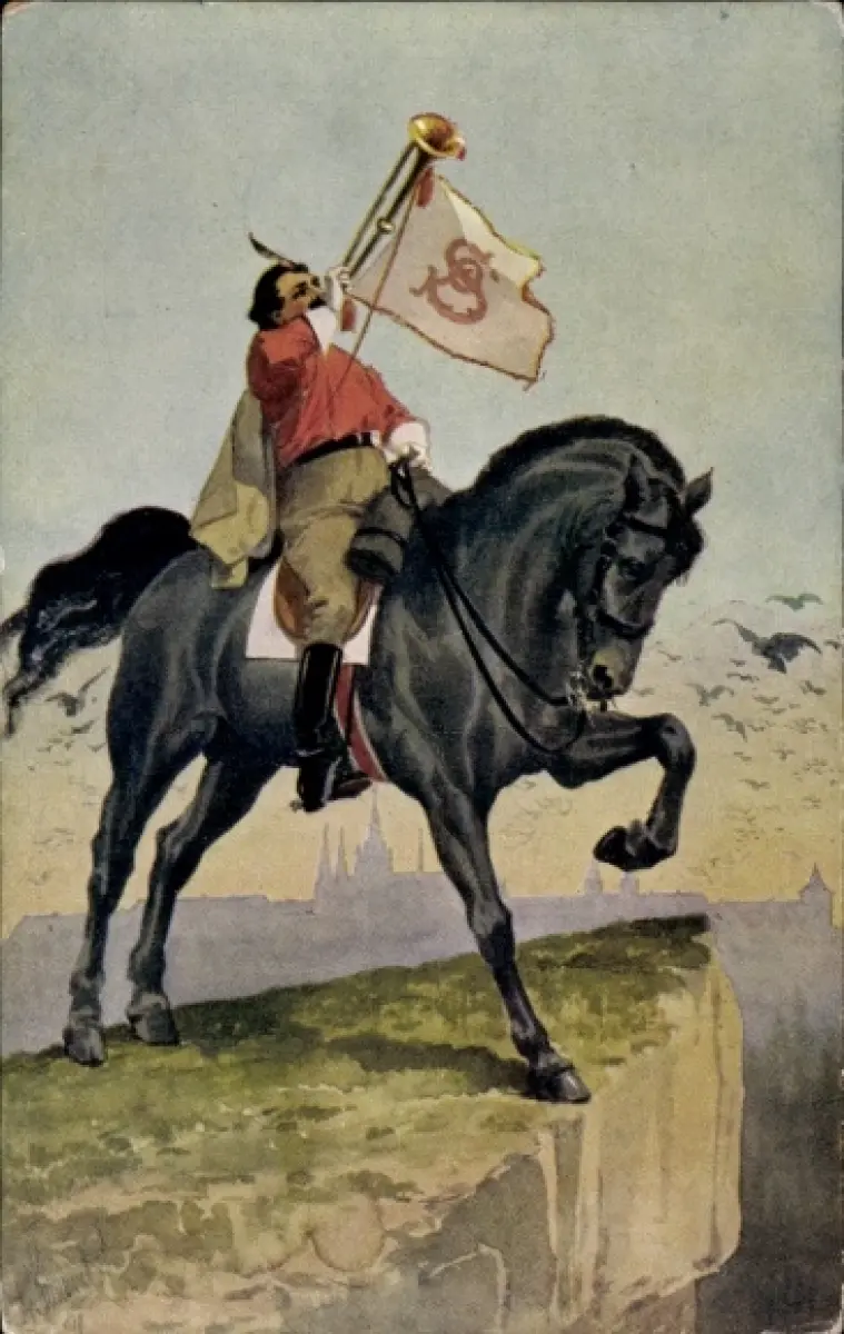 Ak Trompeter zu schwarzem Pferde, Standarte