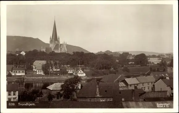 Ak Trondhjem Trondheim Norwegen, Ortsansicht mit Kirche