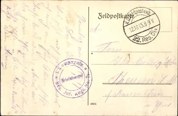 Zustand, siehe Scan, gelaufen, 1915 - ca 14 cm X 9 cm
