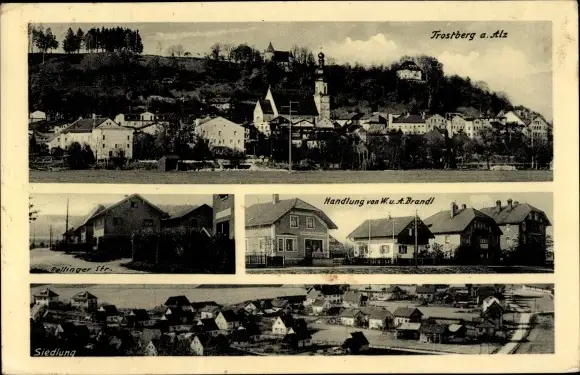 Ak Trostberg in Oberbayern, Panorama, Geschäft, Straßenpartie
