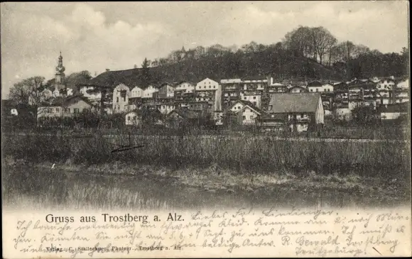 Ak Trostberg in Oberbayern, Totalansicht der Ortschaft