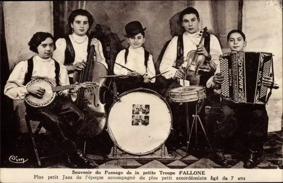Ak Troupe Fallone, Jazzmusiker, Kinder, Akkordeon, Geige