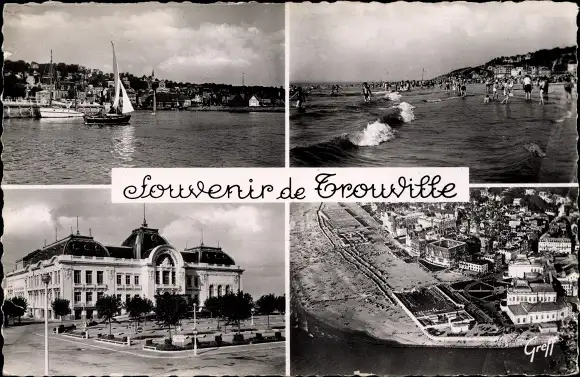 Ak Trouville Calvados, Gesamtansicht, Strand, Segelboot