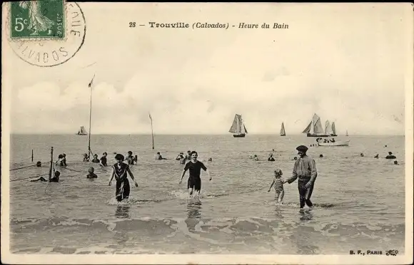 Ak Trouville Calvados, Heure du Bain, Badegäste, Segelboote