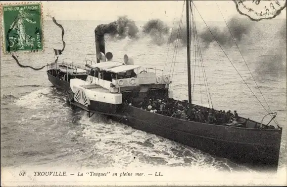 Ak Trouville Calvados, La Touques en pleine mer, Salondampfer