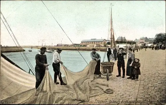 Ak Trouville Calvados, Pecheurs Reparant leurs Filets