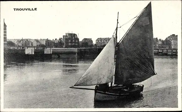 Ak Trouville Calvados, Segelboot, Blick auf den Ort