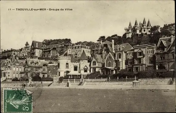 Ak Trouville Calvados, groupe des Villas, Strandpartie