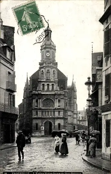 Ak Trouville Calvados, l'Église Notre Dame de Bon Secours, Straßenpartie