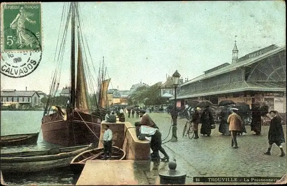 Ak Trouville Calvados, la Poissonnerie, Hafenszene