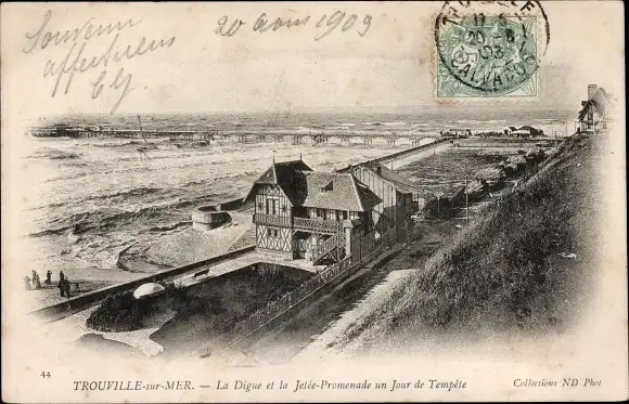Ak Trouville Calvados, la digue et la Jetée-Promenade un jour de Tempête