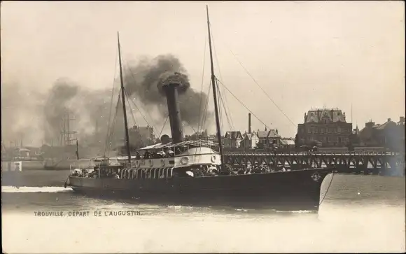 Ak Trouville sur Mer Calvados, Depart de l'Augustin, Dampfer