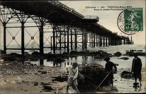 Ak Trouville sur Mer Calvados, Sous la Jetee Promenade