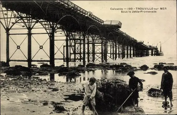 Ak Trouville sur Mer Calvados, Sous la Jetee Promenade