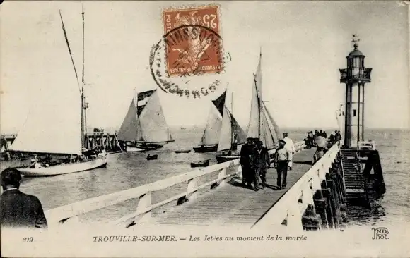 Ak Trouville sur Mer Calvados, Steg, Leuchtturm, Boote