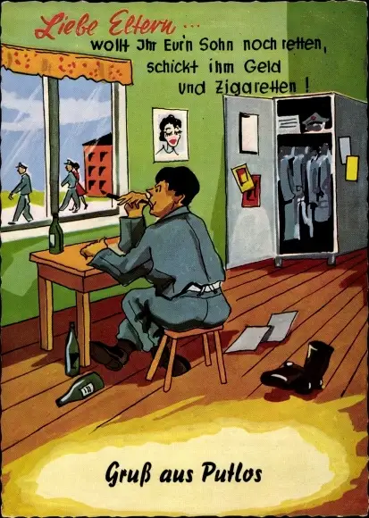 Ak Truppenübungsplatz Putlos bei Oldenburg in Holstein,, Soldat, Schreibtisch, Spind, Gedicht