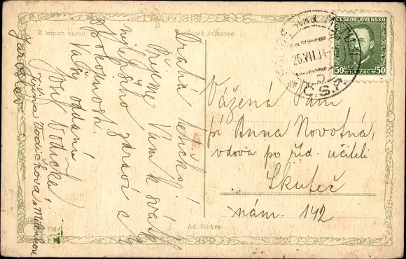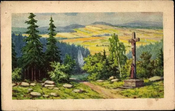 Ak Tschechien, z lesnich samot, Wegekreuz, Landschaft