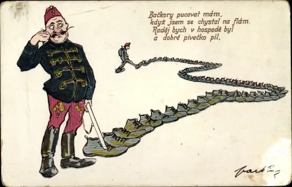 Ak Tschechischer Soldat, aufgereihte Schuhe, Husar