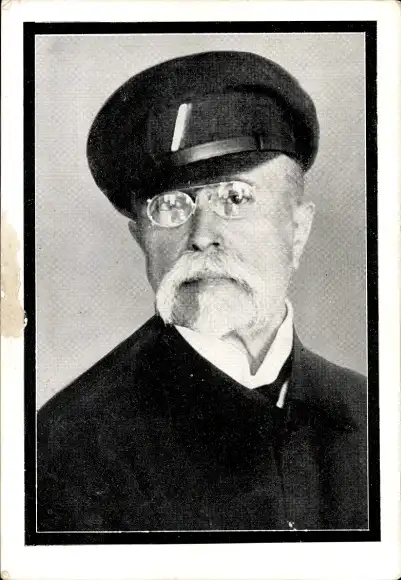 Ak Tschechoslowakischer Staatspräsident Tomáš Garrigue Masaryk, Portrait in Schirmmütze