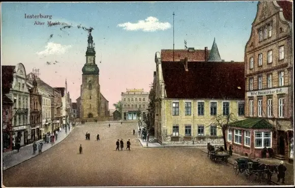 Ak Tschernjachowsk Insterburg Ostpreußen, Alter Markt, Hotel Rheinischer Hof