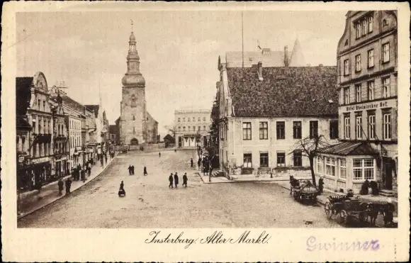 Ak Tschernjachowsk Insterburg Ostpreußen, Alter Markt, Hotel Rheinischer Hof, Kirche
