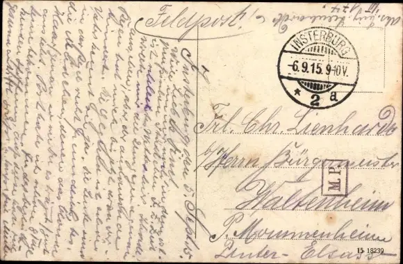 Zustand, siehe Scan, gelaufen, 1915 - ca 14 cm X 9 cm