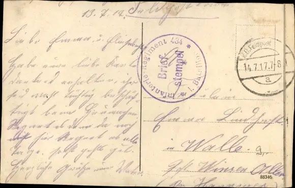 Zustand, siehe Scan, gelaufen, 1917 - ca 14 cm X 9 cm