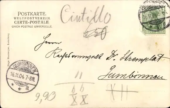 Zustand, siehe Scan, gelaufen, 1904 - ca 14 cm X 9 cm
