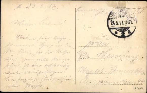 Zustand, siehe Scan, gelaufen, 1917 - ca 14 cm X 9 cm