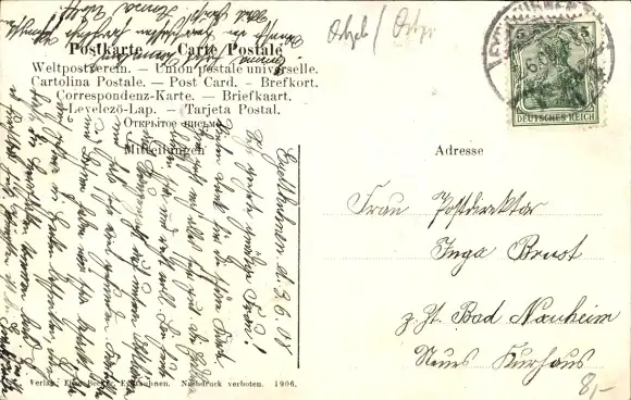 Zustand, siehe Scan, gelaufen, 1908 - ca 14 cm X 9 cm