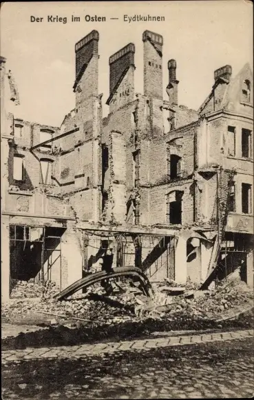 Ak Tschernyschewskoje Eydtkuhnen Ostpreußen, zerstörtes Wohnhaus, 1. WK
