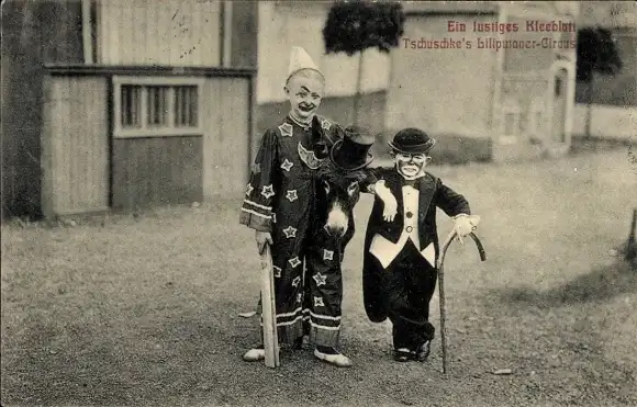 Ak Tschuschke's-Liliputaner-Zirkus Ein lustiges Kleeblatt