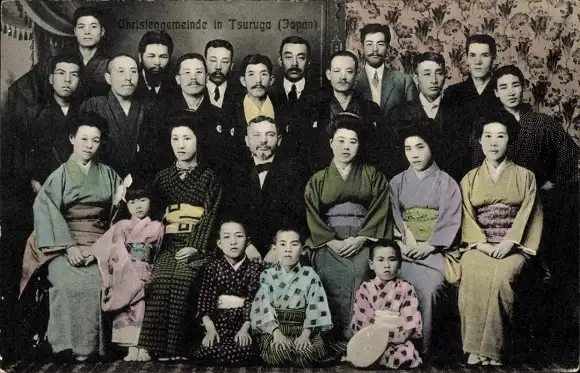 Ak Tsuruga Präf. Fukui Japan, Christengemeinde, Gruppenbild, Japaner in Trachten