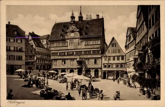 Ak Tübingen am Neckar, Marktplatz, Rathaus