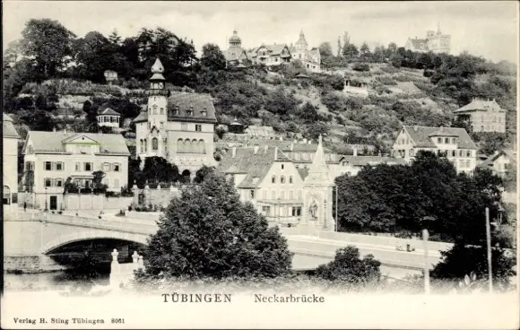 Ak Tübingen am Neckar, Neckarbrücke, Teilansicht, Kirche