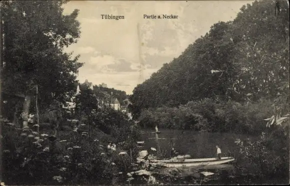 Ak Tübingen am Neckar, Partie am Neckar, Ruderboot