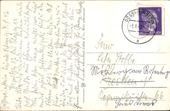 Zustand, siehe Scan, gelaufen, 1942 - ca 14 cm X 9 cm