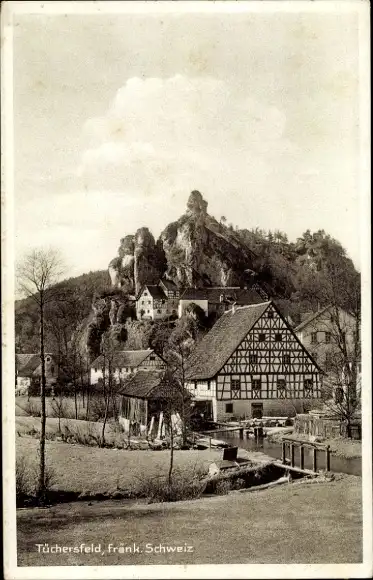 Ak Tüchersfeld Pottenstein Oberfranken, Fachwerkhäuser, Gewässer