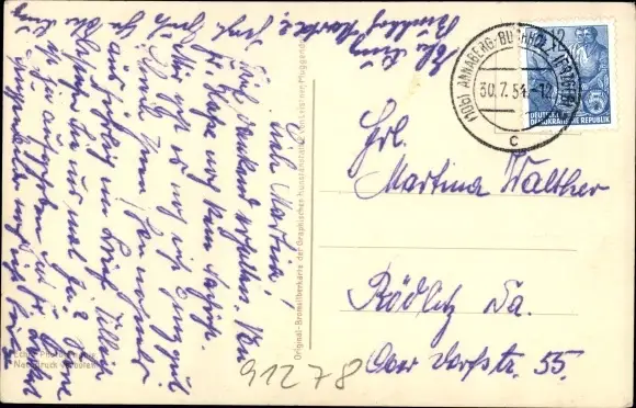 Zustand, siehe Scan, gelaufen, 1954 - ca 14 cm X 9 cm
