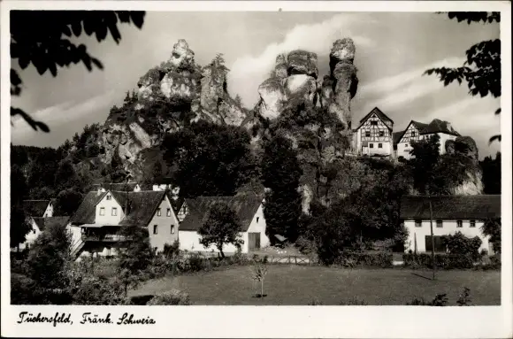Ak Tüchersfeld Pottenstein im Kreis Bayreuth Oberfranken, Teilansicht des Ortes, Berg