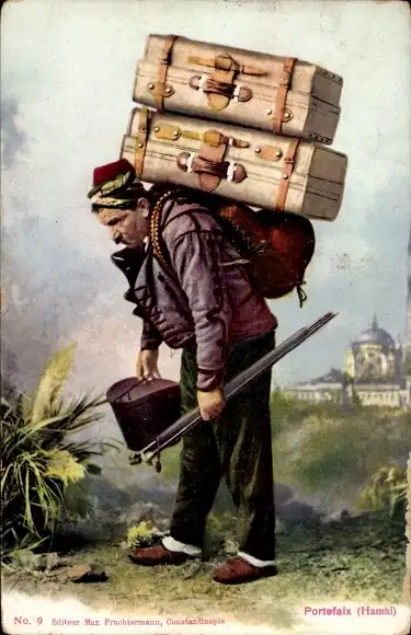 Ak Türkei, Portefaix, Hamal, Lastenträger, Gepäck, Türke