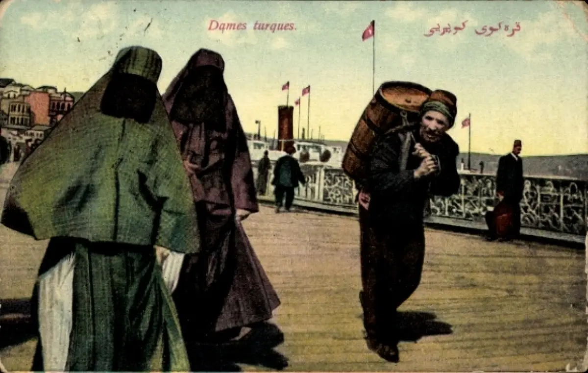 Ak Türkei, Türkinnen, verschleierte Frauen, Türke, Lastenträger