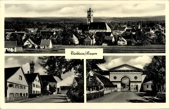Ak Türkheim in Schwaben Bayern, Panorama, Kirche, Straßenpartie, Tor