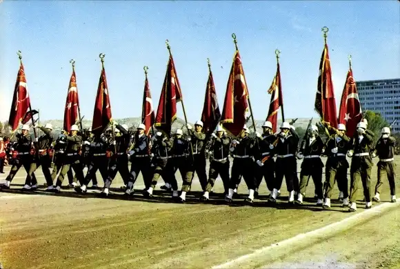 Ak Türkische Soldaten in Uniformen, Fest, Fahnen
